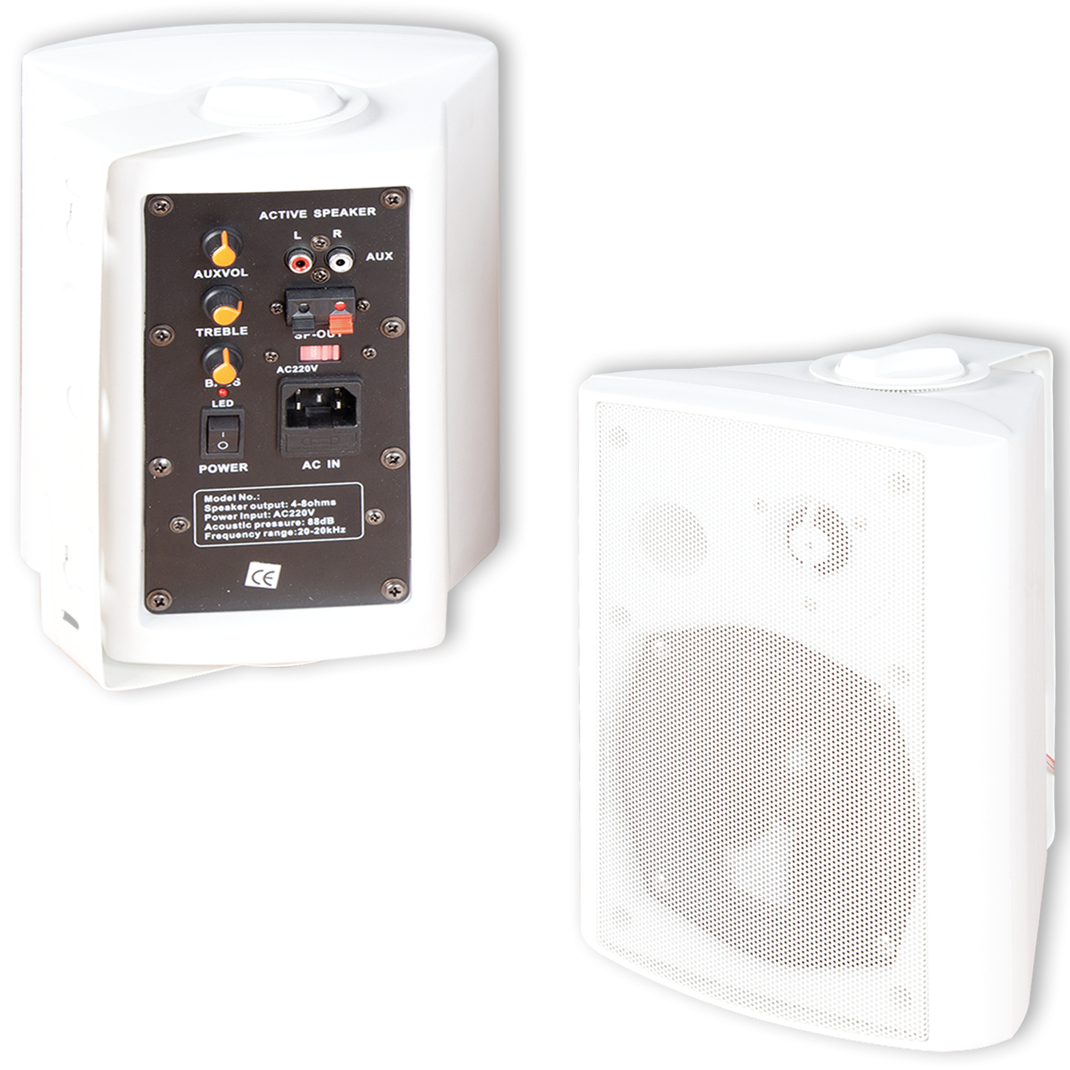 De actieve speakers van Cloudspeaker hebben een gebalanceerd geluid met een krachtige bas. Met tweemaal 30 Watt audiovermogen bieden de actieve luidsprekers een dynamisch bereik van 55 Hz tot 20 kHz. Dit systeem in de witte behuizing is een echte eyecatcher voor uw whiteboard, krijtbord of cloudboard systeem.