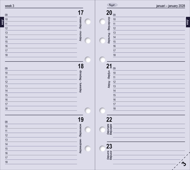 | Pagina indeling: | 7 dagen per 2 pagina's |
