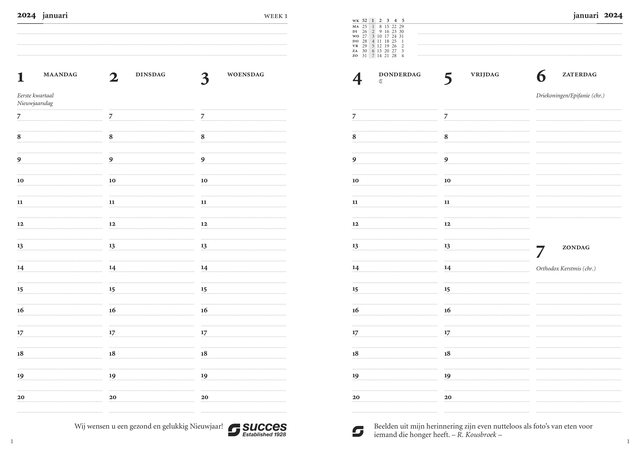 | Pagina indeling: | 7 dagen per 2 pagina's |