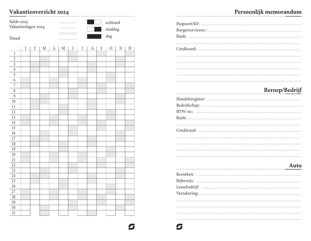 | Pagina indeling: | 4 dagen per 2 pagina's |