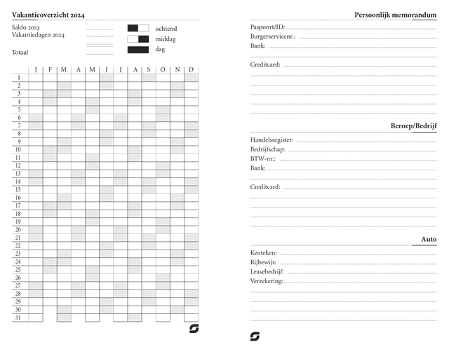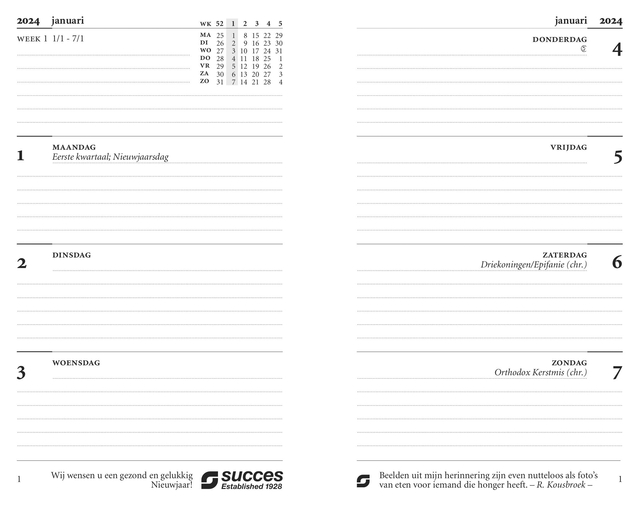 | Pagina indeling: | 7 dagen per 2 pagina's |