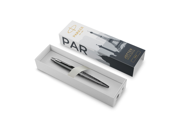 In navolging van de recente tournee langs wereldberoemde steden, gaat de Jotter Special Edition ‘Global Icons’-collectie naar vier nieuwe opwindende bestemmingen in de wereld. Adembenemende bezienswaardigheden te midden van een betoverende sfeer vormen de inspiratie voor de Jotter Special Edition Paris. De tijdloze schoonheid van de elegante grijze tinten van de Parijse architectuur, de complexe patronen die de historische en hedendaagse monumenten sieren; elk element draagt bij aan het ontwerp van de pen. Met het unieke vakmanschap van Parker is het ontwerp vakkundig in de huls van dit fraaie schrijfinstrument gelaserd. Een grijs gelakte afwerking, de soepele schrijfervaring en de kenmerkende klik van de Jotter maken de pen compleet. Voor elke avonturier die een stap zet in de wereld van luxe schrijfwaren, is de Jotter Special Edition Paris een reis die ze niet snel zullen vergeten.