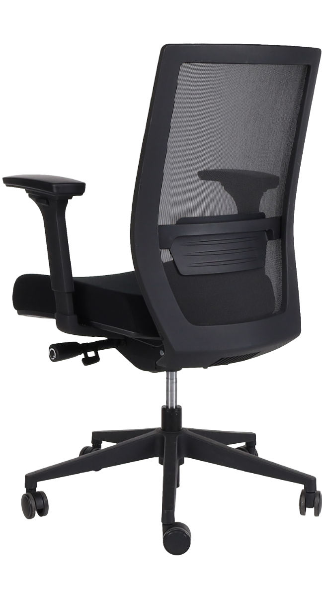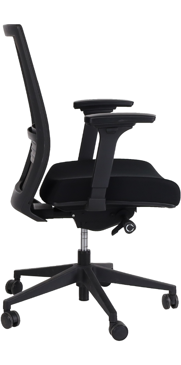De C02 BUREAUSTOEL heeft een luchtig ogende, netbespannen rugleuning, die voorzien is van een lendensteun, voor extra steun in uw rug. Het synchroon-mechanisme zorgt ervoor dat de zitting onafhankelijk van de rugleuning kan kantelen. Door de voorwaarts gekantelde zitting is een actieve zithouding mogelijk. Door de schuifzitting kan de zitdiepte aangepast worden en het free-float mechanisme zorgt ervoor, dat de zitting samen met de rugleuning naar achteren kan kantelen als het systeem ontkoppeld is. De armleggers zijn verstelbaar, waardoor uw zithouding nog verder geoptimaliseerd kan worden. Het zwarte voetkruis maakt de look compleet! Indien u kiest voor multifunctionele wielen, dan kan de C02 BUREAUSTOEL op harde en zachte vloeren gebruikt worden. Onder de montage optie kunt u ook aangeven of u deze stoelen gemonteerd of ongemonteerd wilt ontvangen.