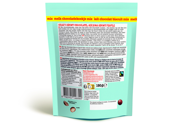 Eigenschappen "Chocolade Tony's Chocolonely Lil' Bits melk koekje mix 150 gram"