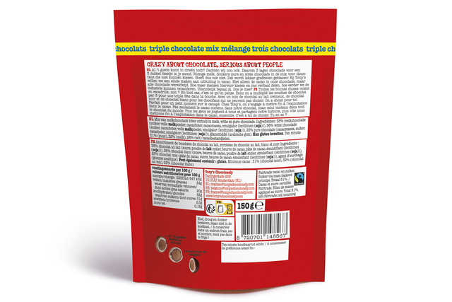 Eigenschappen "Chocolade Tony's Chocolonely Lil' Bits triple chocolate 150 gram"