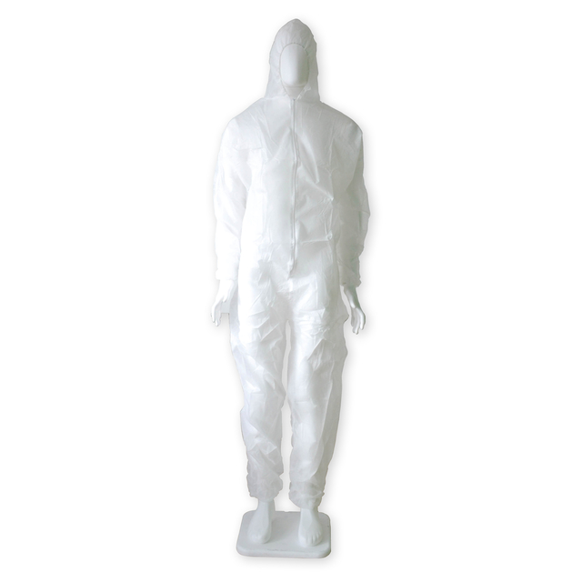 De Hynex Coveralls zijn onmisbare producten voor alle professionals die werken in een productieproces, waarbij hygiënisch werken een must is. Ze houden stof en chemicaliën tegen en beschermen kleding en huidoppervlakten. Volledige bescherming Deze overall is voorzien van een rits voor het eenvoudig aan- en uittrekken. Doordat er ook een capuchon op zit, zorgt deze coverall voor een volledige lichaamsbedekking. De polsen zijn voorzien van elastiek wat goed afsluit. Materiaal De coverall is gemaakt van een ademend non-woven textiel, wat zorgt voor een perfect draagcomfort. De categorie stof van de coverall is non-woven, of vlies en is een stof die niet geweven of gebreid is. Dit in tegenstelling tot de klassieke fabricage van textiel waar wel garen worden gebruikt. Daarentegen wordt het materiaal rechtstreeks als vezel of filament in een vlies afgelegd en vervolgens aan elkaar gehecht. Kenmerken * Materiaal: Polypropeen PP / non-woven * Maat: XL * Kleur: Wit * Gewicht: PP 35 gsm * Verpakking: 1 stuk per seal * Keurmerk: CE-gecertificeerd / ISO 9001 standaard