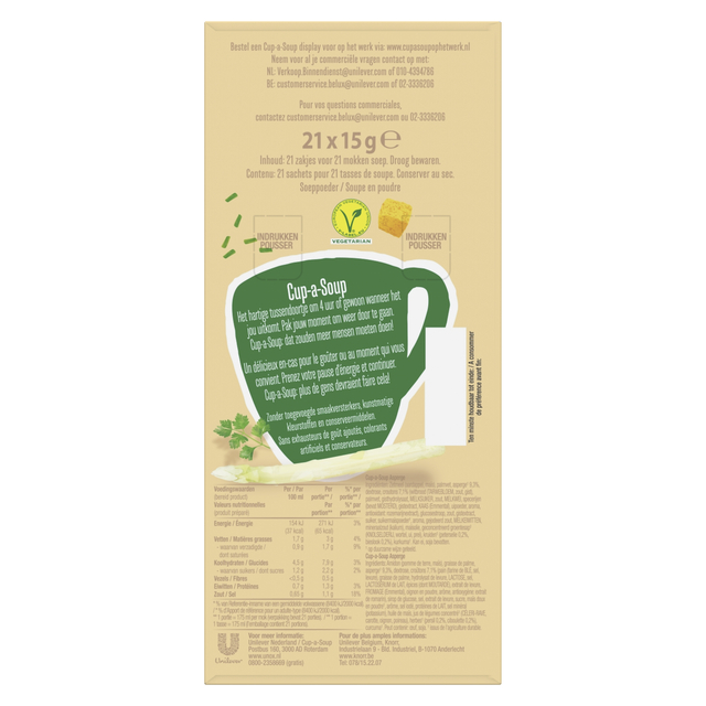 UNOX is een merknaam van Unilever. KantoorArtikelen.nl heeft de niet meer weg te denken Cup a Soup produkten en Cup a Soup drinkbekers van Unox natuurlijk allemaal online voor je klaar staan ! Iedereen om 16.00u aan de cup a soup ! Bestel Unox cup a soup snel mee met andere kantoorbenodigdheden, papierwaren, toners, frisdranken of verpakkingsmaterialen.