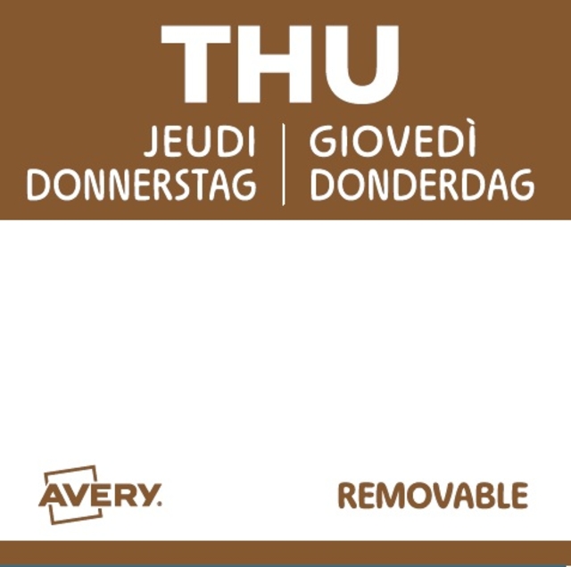 Etiket Avery HACCP donderdag-bruin 25x25mm 1000st