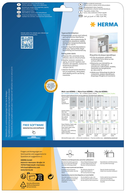 Herma is een toonaangevende fabrikant van zelfklevende etiketten en etiketteersystemen. Het bedrijf is opgericht in 1906 in het Duitse Stuttgart en heeft zich sindsdien ontwikkeld tot een wereldwijde speler op het gebied van labeloplossingen. Het merk staat bekend om zijn hoogwaardige producten en innovatieve oplossingen voor een breed scala aan toepassingen.