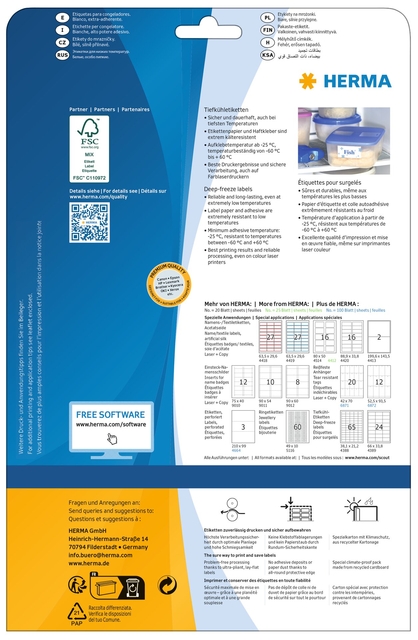 Herma is een toonaangevende fabrikant van zelfklevende etiketten en etiketteersystemen. Het bedrijf is opgericht in 1906 in het Duitse Stuttgart en heeft zich sindsdien ontwikkeld tot een wereldwijde speler op het gebied van labeloplossingen. Het merk staat bekend om zijn hoogwaardige producten en innovatieve oplossingen voor een breed scala aan toepassingen.