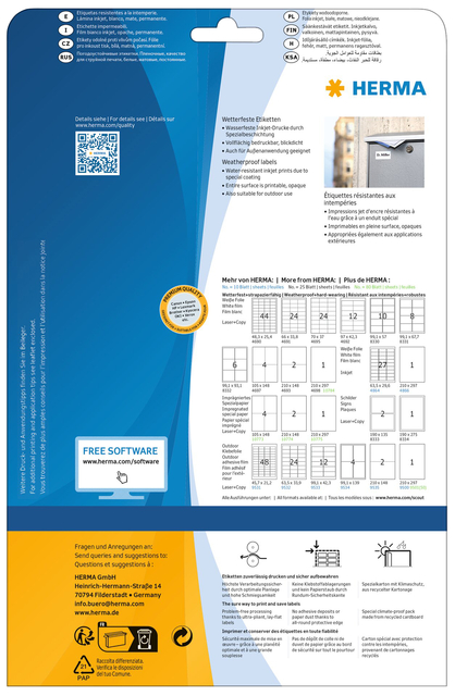 Herma is een toonaangevende fabrikant van zelfklevende etiketten en etiketteersystemen. Het bedrijf is opgericht in 1906 in het Duitse Stuttgart en heeft zich sindsdien ontwikkeld tot een wereldwijde speler op het gebied van labeloplossingen. Het merk staat bekend om zijn hoogwaardige producten en innovatieve oplossingen voor een breed scala aan toepassingen.