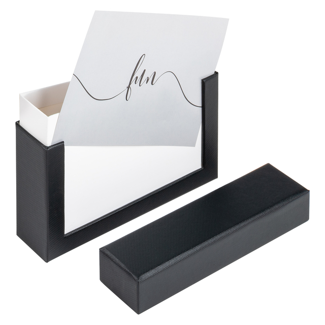 Leuke fotodoos in zwart voor 100 foto's in het formaat tot 10 x 15 cm. De doos heeft een hoogwaardige papieren omslag en een uitsparing voor een persoonlijke foto in het formaat 10 x 15 cm. Deze doos is verkrijgbaar in vele andere kleuren.