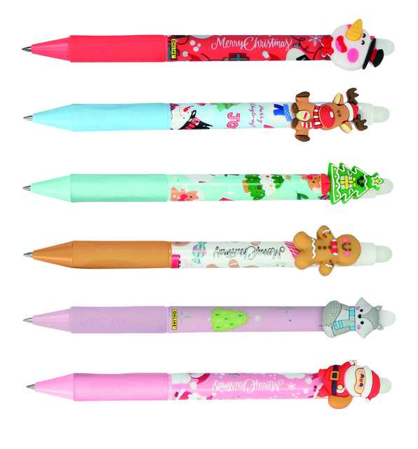 Maak kennis met de nieuwe MagiXX X-mass gelpennen, de perfecte combinatie van plezier en functionaliteit voor elke gelegenheid. Deze leuke gelpennen zijn niet alleen stijlvol en kleurrijk, maar ook uitwisbaar en navulbaar, wat zorgt voor eindeloos schrijfplezier. Kies uit een breed scala aan thema’s en kleuren, zoals de kerstman, kerstboom een rendier en meer. Er is altijd een pen die bij jouw stijl past! * Deze display bestaat uit 30 pennen met 6 verschillende dessins. Op de drukknop van de pen vind je een leuk figuur, bijpassend bij het thema van de pen. Schrijfbreedte 0.7mm. Schrijfkleur blauw. Navulbaar.