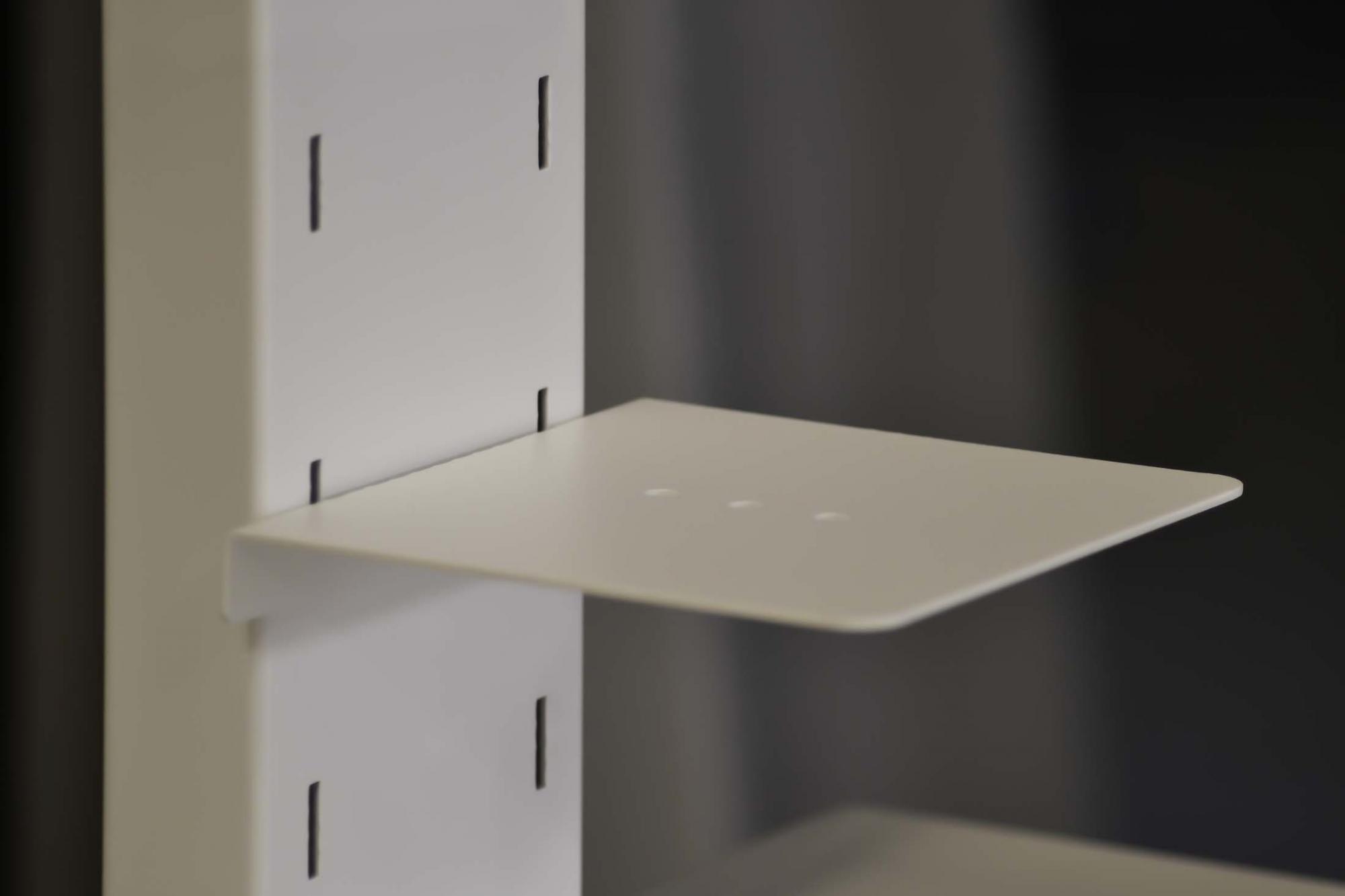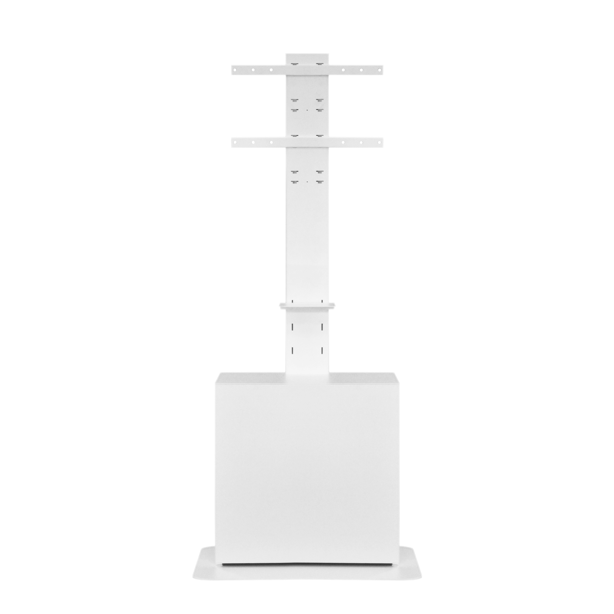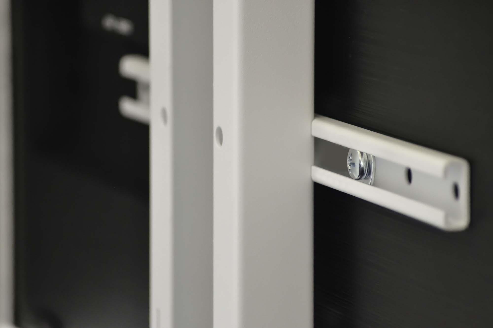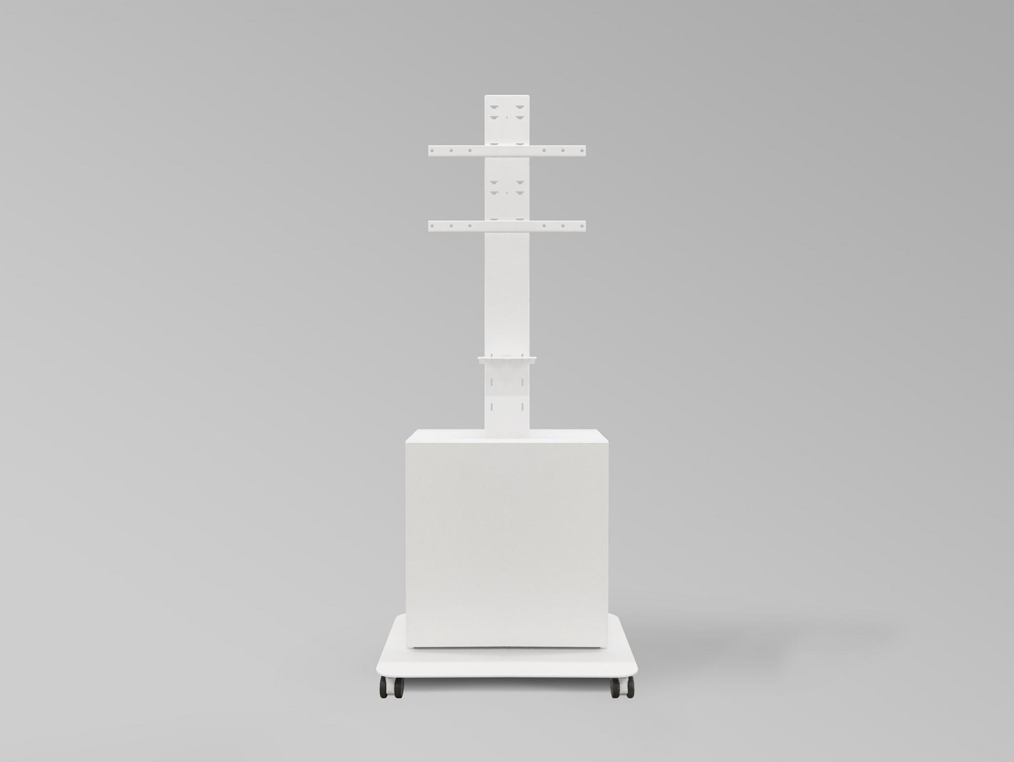 Om de ruimte van de veelal kleine vergaderruimtes effectief te kunnen benutten, is de kleine Huddle Room Console perfect. De eenvoudige look kan perfect in elk ruimteconcept worden geïntegreerd. De onderkast van het apparaat biedt voldoende ruimte voor videoconferentietechnologie. Om u een vlekkeloos zicht te garanderen, vindt het systeembeheer plaats binnen de kolom, kabeluitgangen bevinden zich aan de zij- en achterkant van de onderkast. Voor de zuil wordt een in hoogte verstelbare cameraplank meegeleverd, die in drie posities in het onderste gedeelte van de zuil kan worden vastgehaakt. In de apparatuurkast van de mediaconsole bevindt zich een plank. De mediaconsole biedt plaats aan displays tot maximaal 65″ en tot maximaal 50 kg. Houder voor VESA 200/300/400 (afhankelijk van de schermgrootte kan de hoogte worden versteld met behulp van de ratel, in stappen van 10 cm).