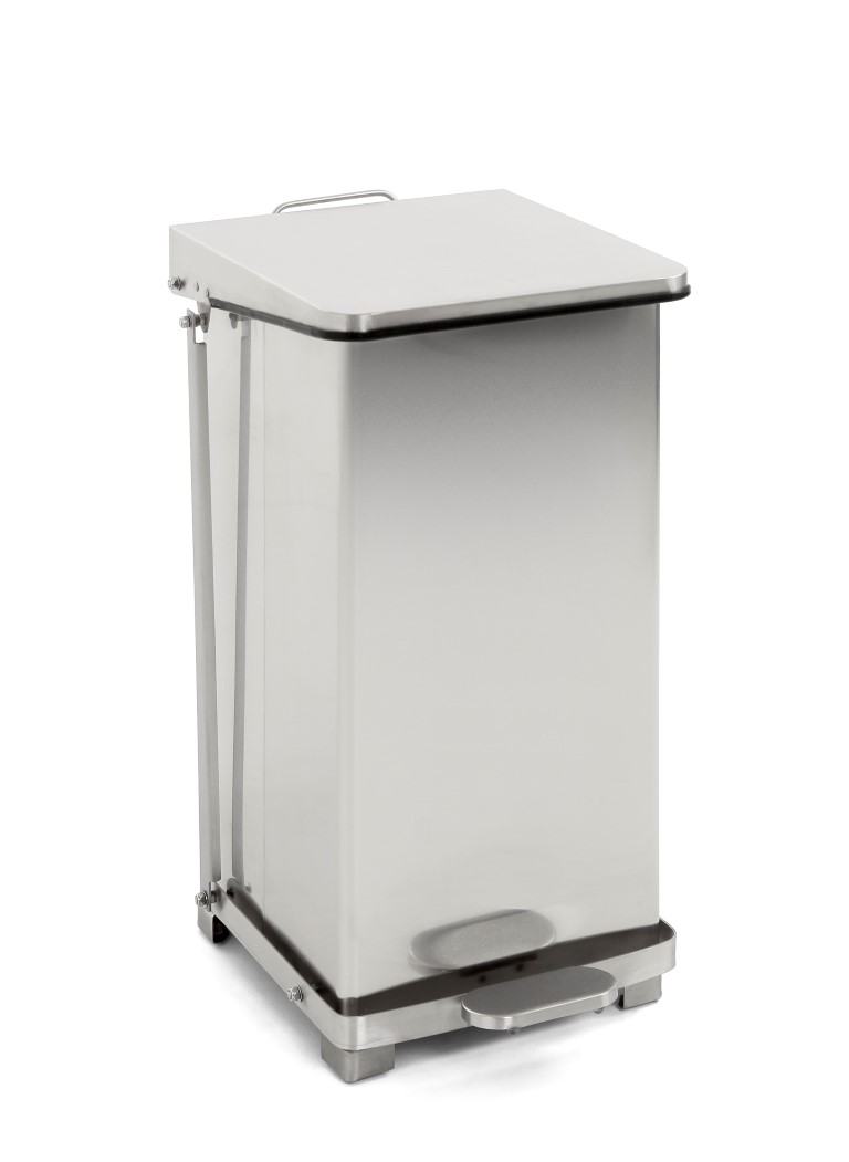Robuuste pedaalemmer voor professioneel en industrieel gebruik. Voorzien van gedempt deksel en zakhouder. De pedaalemmer staat op pootjes en is conform HACCP richtlijnen. Inhoud ltr: 45 Afmetingen mm: b 370 l 370 h 590