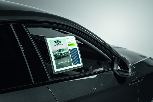 * Infohoes voor gebogen en vlakke ruiten, dankzij de statische hechting is deze geschikt om te bevestigen aan autoruiten, winkelruiten en toonbanken. * Bevestig informatie op glasoppervlakken binnenshuis. * Geschikt voor glazen oppervlakken, maar ook PVC en acryl (zoals spatschermen of veiligheidsschermen - niet geschikt voor PET oppervlakken). * Voor documenten in A4-formaat. * Statische hechting (lijmvrij). * Hittebestendig tot ongeveer 70°C. * Tot 2 jaar UV-bestendig. * Kan steeds opnieuw worden gebruikt zonder lijmresten achter te laten. * Eenvoudig vervangen van documenten dankzij de invoeghulp op de achterzijde. * Kan zowel in staand als liggend formaat worden gebruikt. * Binnenafmetingen: 303x216mm. * Buitenafmetingen: 323x236mm.