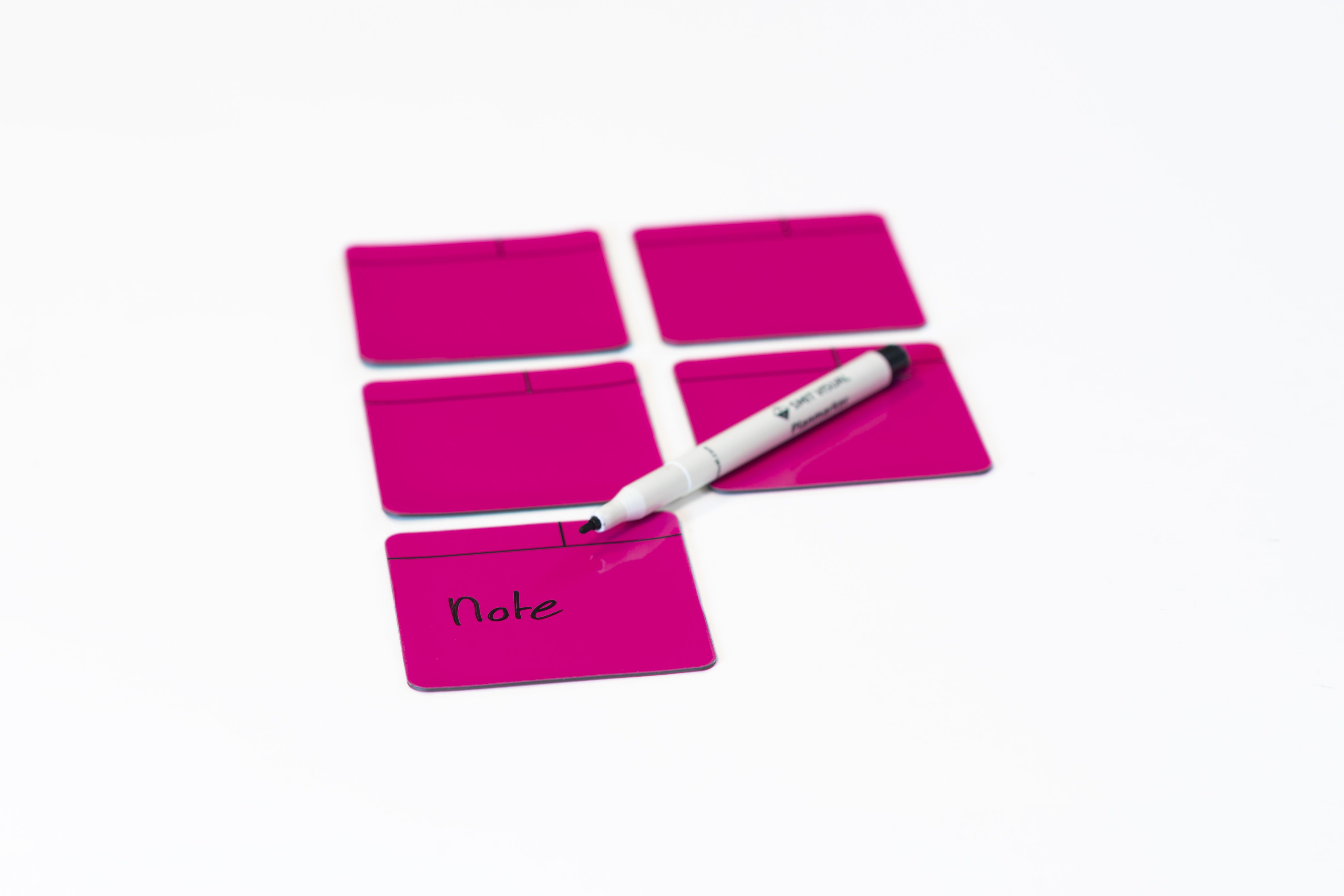 Schrijf taken, memo’s en notities op een Scrum magneet en plaats deze op het Visual Management bord. Zo bundelt u alle inzichten, ideeën en notities van alle belanghebbenden zodat alle aanwezige informatie en kennis binnen het team direct voor iedereen inzichtelijk is. Op de Scrum magneten vindt u twee vakjes waarop onder andere titel en datum genoteerd kunnen worden.