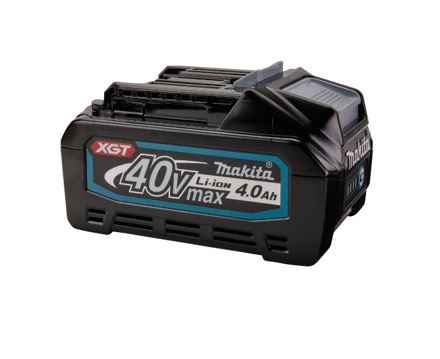 XGT 40 V Max Li-ion accu met een tankinhoud van 40 Ah. De accu is voorzien van een led indicator die de tankinhoud van de accu weergeeft. De machines accus en oplader van het XGT-platform zijn standaard voorzien van elektronica waardoor deze met elkaar kunnen communiceren. De oplader geeft de meest geoptimaliseerde oplading aan de accu afhankelijk van de status van de accu. In combinatie met de DC40RA snellader is de accu in slechts 45 minuten weer volledig geladen.