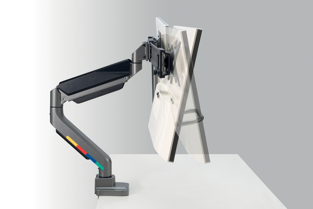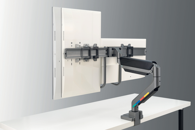 De SmartFit™ Dubbele Monitorarm met Dwarsbalk en Handgreep is een ideale oplossing voor gedeelde werkplekken. De monitorarm maakt gebruik van gasveertechnologie om moeiteloze ergonomische controle te bieden voor een dual-monitoropstelling. Het is heel eenvoudig om de perfecte kijkhoek te creëren met de afzonderlijke hoogte-aanpassing voor elke monitor. * De comfortabele handgreep zorgt voor gemakkelijke monitoraanpassingen. * Elke monitor kan afzonderlijk horizontaal worden versteld voor een comfortabelere kijkervaring. * Het gasveermechanisme maakt hoogte-aanpassingen moeiteloos. * Biedt plaats aan tot 2 monitors van 32”, elk met een gewicht tot 9kg. * Basis met C-klem of oogbevestiging voor een probleemloze installatie. * 5 jaar beperkte garantie.