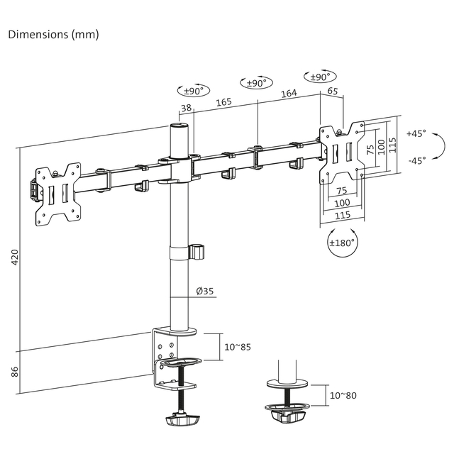 | Soort Computerstandaard / -steun: | Monitorarm |
