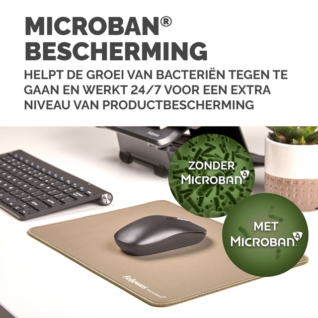 Meer dan 25% groter dan onze standaard muismatten voor meer bewegingsvrijheid, waardoor kleine herhaalde bewegingen die pijn in de pols kunnen veroorzaken, worden verminderd. Bescherm uw bureaublad en verbeter de prestaties van uw muis met deze muismatten die geschikt zijn voor optische en lasermuizen. De ingebouwde Microban®-bescherming helpt de groei van bacteriën te voorkomen en werkt 24/7 voor een extra bescherming van het product. Gemaakt van 83% gerecycled materiaal. De antislipbasis houdt de muismat de hele dag op zijn plaats. Duurzame platte stiksels voorkomen rafelen. Gemaakt om lang mee te gaan, met 5 jaar garantie.