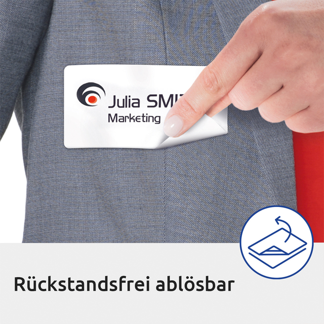 * Zelfklevende naambadges plakken stevig en zijn eenvoudig afneembaar zonder textiel of kleding te beschadigen. * Met deze naambadge-etiketten heeft u geen badgehouder, spelden of andere bevestigingssystemen nodig. * Niet geschikt voor gebruik op leer, zijde, fluweel of fijne stoffen. * De naambadges zijn te bedrukken met een inkjetprinter of handbeschrijfbaar. * Gebruik gratis Avery Design & Print software om uw naambadges snel en eenvoudig te printen.