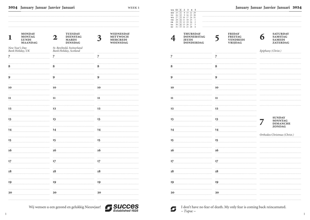 | Pagina indeling: | 7 dagen per 2 pagina's |
