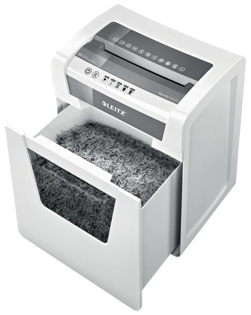 Een stijlvolle en sterke papierversnipperaar van Leitz. Ideaal voor gebruik op een klein kantoor. * Producteigenschappen; * Vernietigt tot 15vel tegelijkertijd in snippers van 4x40mm. * Veiligheidsniveau P4. * Stillere werking voor een rustige werkomgeving (bij regelmatig gebruik van olievellen). * Anti-vastloop technologie, papiervernietiger stopt automatisch en draait terug als er teveel papier is geplaatst. * Continue werkduur van 2 uur. * Vernietigingssnelheid van 1,8 meter per minuut. * Tiptoetsbediening - simpel en intuïtief voor eenvoudige bediening. * Eenvoudig te legen opvangbak van 23 liter. * Vernietigt ook nietjes en paperclips. * Afmetingen 465x370x279 mm.