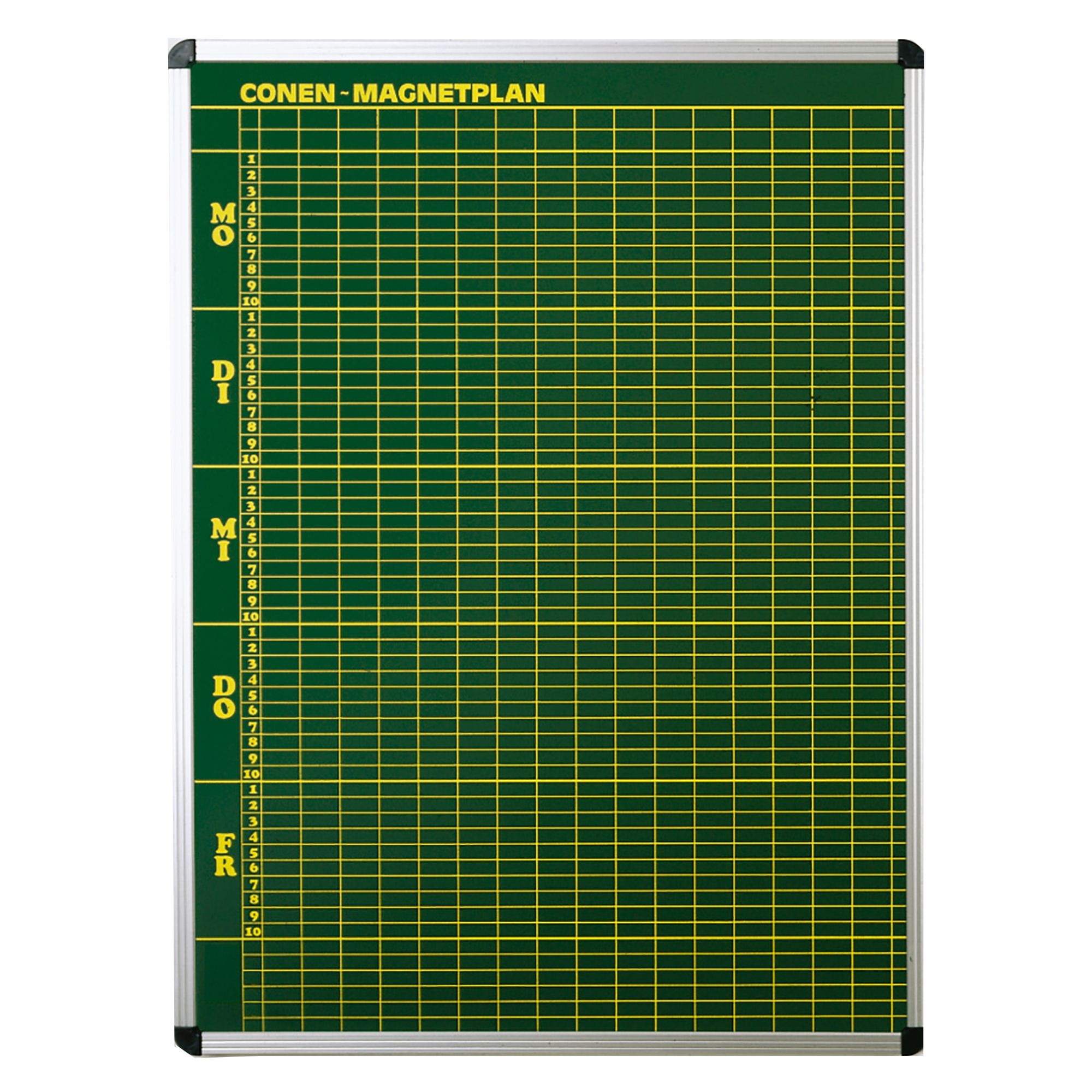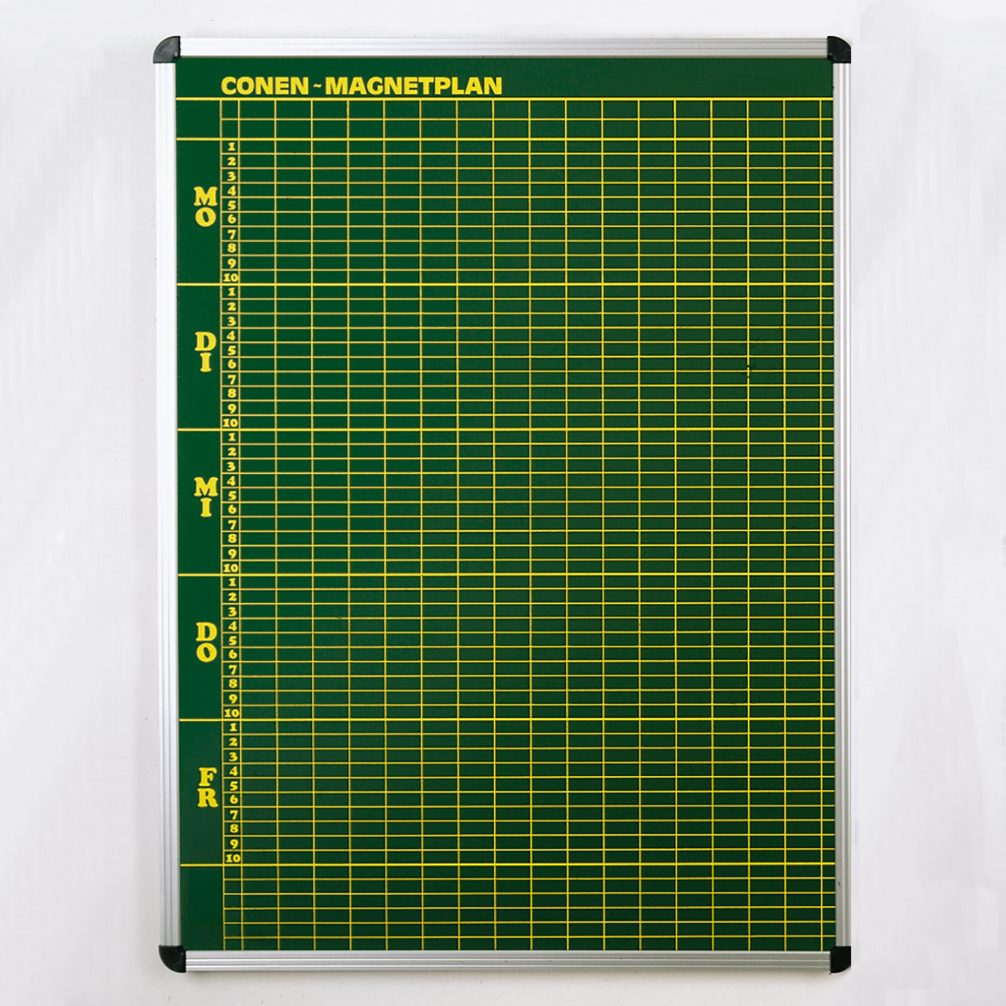 Ons roosterbord "CMP.." is speciaal afgestemd op de behoeften van scholen en is de perfecte oplossing om alle lessen overzichtelijk te organiseren. De planborden kunnen worden geleverd met een wit of groen bordoppervlak. Het whiteboardoppervlak heeft een ingebrand rooster in zwart en kan worden beschreven met droog uitwisbare pennen, het oppervlak kan droog uitwisbaar zijn. Het groene vlak heeft een ingebrand rooster in geel en is beschrijfbaar met krijt. De dienstregelingborden zijn voorzien van een rondomlopend aluminium frame. Dankzij hun magnetische oppervlak kunnen de bijpassende sets magneten voor leraren (CMP M 30) of specialistische ruimtes (CMP M 15) eenvoudig op het bord worden geplaatst.