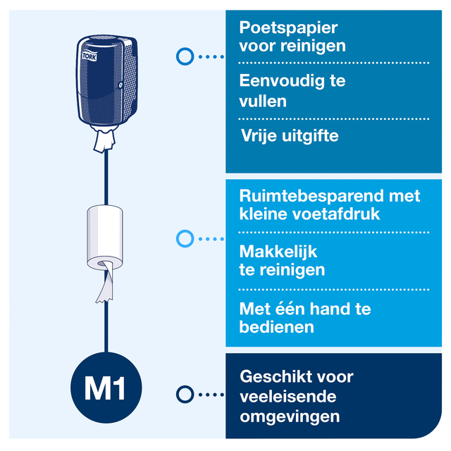 Tork produkten heb je nodig bij elke keer dat er iets te vegen, drogen, poetsen of reinigen valt. Deze klussen komen allicht voor in de moderne kantoortuin,garage, ziekenhuis, magazijn, kroeg, maar zeker ook bij jou thuis. Daarom hebben we bij KantoorArtikelen.nl alle leverbare Tork produkten, zoals tafellakens, servetten, doeken, toiletpapier en -dispensers, handoeken, tissues en -dispensers, luchtverfrissers, toiletgarnituur, handzeep en -dispensers, afvalbakken, asbakken, prullenbakken, doeken en poetspapier staan online klaar voor je.