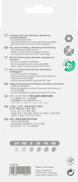 Potlood Faber-Castell 6 hardheden inclusief puntenslijper en gum