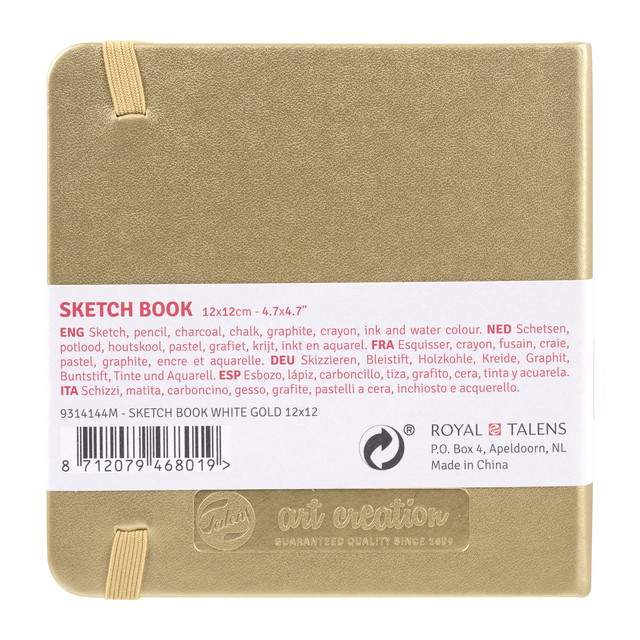 Schetsboek Talens Art Creation 80 witte vellen 140gr 120x120mm witgoud