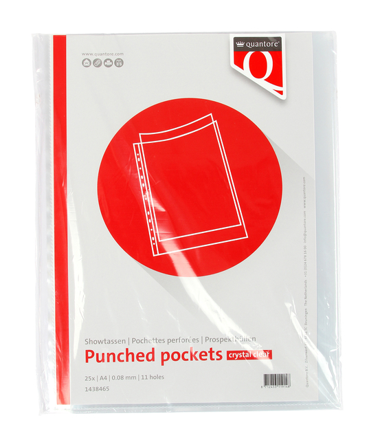 Met de Quantore Showtas A4 berg jij jouw documenten niet alleen netjes, maar ook duurzaam en professioneel op. Dankzij het gladde polypropyleen met een dikte van 0,08mm blijven je papieren goed beschermd, terwijl de transparante structuur ervoor zorgt dat alles duidelijk leesbaar blijft. De copysafe-eigenschap voorkomt vervaging of vastkleven van printjes – zelfs na langdurig gebruik. Je schuift je documenten moeiteloos in via de open bovenzijde en dankzij de 11 versterkte ponsgaten klik je deze showtas eenvoudig in iedere standaard map of ringband. Ideaal voor op kantoor, op school of thuis – altijd georganiseerd en representatief.