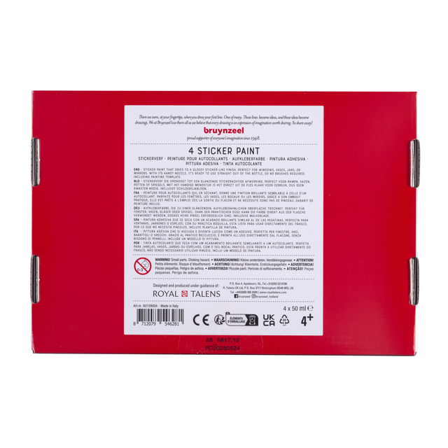 Laat de fantasie van je kind stralen met de Bruynzeel Stickerverfset! Deze complete creatieve set bevat vier levendige, mengbare kleuren (geel, rood, blauw en zwart) en twee leuke sjablonen om direct aan de slag te gaan. Dankzij het handige mondstuk kunnen kinderen rechtstreeks op plastic vellen tekenen, geen penselen nodig! Laat de verf drogen en plak de glanzende creaties op ramen, spiegels, vazen, potten, etuis en meer. Makkelijk in gebruik, zonder geknoei, en perfect voor verjaardagen, vakanties of regenachtige middagen. Knijpen, drogen, plakken: eindeloos sticker plezier gegarandeerd!