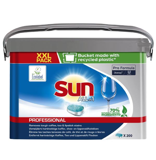SUN is in 1966 op de markt gebracht in Belgie. Het begon met het Sun klassiek systeem, Sun poeder, Sun zout en Sun spoelglans. Tegenwoordig zijn slimme all-in-one produkten van Sun op de markt. Aangezien in bijna elk kantoor wel een vaatwasmachine staat, meent KantoorArtikelen.nl dat het handig Sun produkten online aan te bieden. Sinds 2010 zijn alle Sun tabletten 100% fosfaatvrij. En daar zijn ze bij Sun (merknaam van de Brits Nederlandse onderneming Unilever) behoorlijk trots op. Sun maakt je vaat perfect schoon.