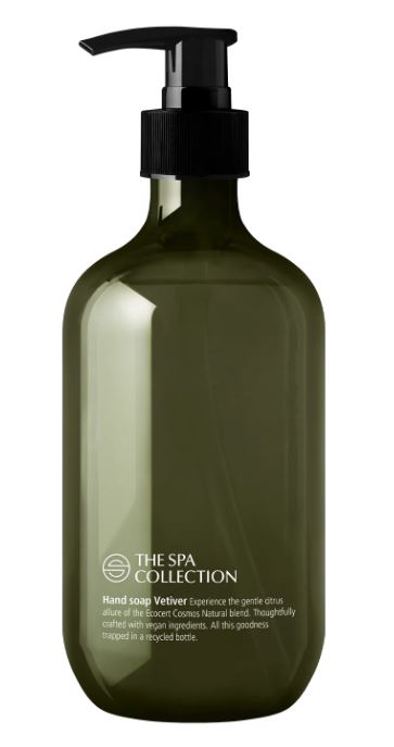 The Spa Collection Vetiver Handzeep is een natuurlijke handzeep die speciaal is samengesteld met ecologisch verantwoorde ingredienten verpakt in een fles van 475 ml die is vervaardigd uit gerecyclede materialen. De handzeep is verrijkt met de verfrissende geur van vetiver een natuurlijk ingredient dat bekend staat om zijn reinigende en verkwikkende eigenschappen.