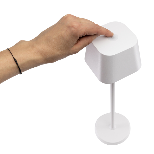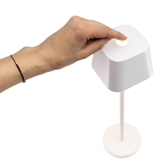 Creëer jouw perfecte lichtmoment . Stijlvolle, waterbestendige verlichting, waar je ook bent. Brengt sfeer in elke ruimte met een strak wit design. De lamp is traploos dimbaar warm wit licht, zodat je eenvoudig de juiste lichtsterkte kiest voor elk moment: van een gezellige borrel tot een rustige werksessie. Dankzij de draadloze werking en het compacte formaat neem je de lamp overal mee naartoe bijv. naar het terras. De geïntegreerde accu zorgt voor urenlang gebruik zonder stopcontact. * Geschikt voor zowel binnen- als buitengebruik * Weerbestendig (IP54-classificatie) * Oplaadbaar met de meegeleverde USB-kabel * Traploos dimbaar warm wit licht * Brandduur 10 - 20 uur * Lichtopbrengst 60 lumen * Duurzame, energiezuinige LED-verlichting * Energie label F * 2 jaar garantie