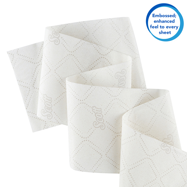 * Verbeter de ervaring in uw toiletruimten met vertrouwde Scott Essential-oplossingen die zijn ontworpen om de vereiste reinigings- en hygiënestandaarden te kunnen handhaven in drukbezochte omgevingen, zonder in te leveren op kwaliteit en waarde. Scott Essential jumbo toiletpapier is 2-laags toiletpapier van hoge kwaliteit dat een efficiënte oplossing biedt voor drukbezochte omgevingen, met betrouwbare doorspoelbaarheid om verstoppingen van toiletpapier te voorkomen en een goede hygiëne op de werkplek te ondersteunen. * Dankzij het reliëflogo en de patronen van Scott voelt elk vel toiletpapier prettiger aan, met een aantrekkelijkere uitstraling. * Elke jumbotoiletrol is gemaakt van 100% gerecyclede vezels en heeft een hoge capaciteit, waarbij elke rol 5 keer langer is dan de standaard toiletrol voor commerciële omgevingen. * Compatibel met diverse toiletpapierdispenseropties van Kimberly-Clark: Aquarius Enkele Mini Jumborol Toilettissue Dispenser in wit (productcode 6958), een witte Aquarius Dispenser met hoge capaciteit (productcode 6947), non-stop Aquarius Dispensers in wit en zwart (productcodes 6991 en 7184) en een roestvrijstalen dispenser met hoge capaciteit (productcode 8974). * Voor milieuzekerheid is de Scott Essential Jumborol Toiletpapier gemaakt van 100% gerecyclede vezels en voorzien van het Europese Ecolabel. * Elke Jumbo toiletpapierrol van 40 x 9 cm bevat 500 vellen wit, 2-laags toiletpapier en is 200 m lang. Dit product heeft een kern van 76 mm.