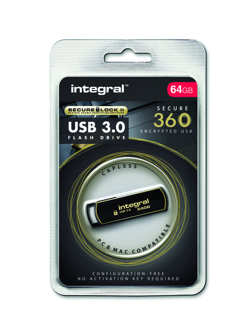 USB stick 3.0 Integral Secure 360 USB-A 64GB zwart