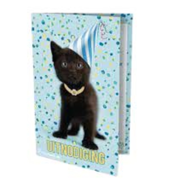 * 6 Stijlvolle uitnodigingskaarten met daarop een poesje met een feesthoedje op en de tekst: 'Uitnodiging'. * Inclusief enveloppen een mooie uitnodiging voor een gaaf feestje!