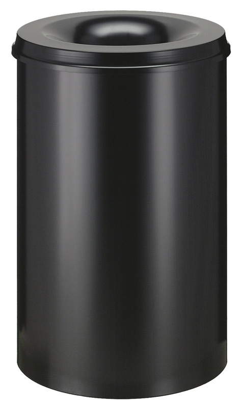 Ronde papierbak met een inhoud van 110 liter. Gemaakt van epoxy gecoated metaal. De vlamdover is een speciale deksel met een kleinere opening dat op de ronde metalen bak wordt geplaatst.Getest op brandveiligheid. 47cm hoogte 72cm.