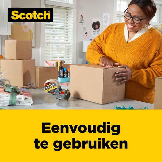 Scotch® Box Lock™ Heldere Verpakkingstape heeft een sterke kleefkracht die onmiddellijk hecht aan de meeste dozen, inclusief moeilijk te plakken tot 100% gerecycleerde dozen. De nieuwe geavanceerde lijm zorgt voor een veilige afdichting bij ruwe behandeling en extreme buitentemperaturen. De sterkste verpakkingstape van Scotch® Brand hecht onmiddellijk op de meeste dozen, inclusief 100% gerecycleerde dozen en behoudt zijn verzegeling bij ruwe behandeling en extreme temperaturen tot -26°C. Nieuwe geavanceerde lijm zorgt voor een veilige afdichting van de randen van de doos, zodat u geen lagen tape nodig hebt om de klus te klaren - één strip en hij wordt verzonden! Tape rolt soepel af en splijt of scheurt niet. Sluit uw postlabel goed af en bescherm het met de verhuis- en verpakkingstape. Ideaal voor het verzenden, verplaatsen en opslaan van verpakkingen. De doorzichtige verpakkingstape is transparant wanneer hij wordt aangebracht en duidelijk tot op de kern, en sluit verpakkingen veilig af zonder belangrijke etiketteringsinformatie te verbergen​. * Afmeting: 48mmx50 m. * 3 rollen/verpakking.