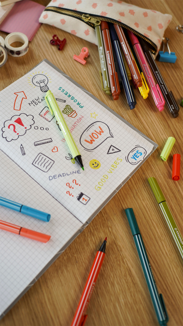 Stabilo is met de productie van potloden begonnen, waarna men is overgestapt op pennen en markeerstiften. Markeerstiften en (bal)pennen van Stabilo staan bekend om hun hoge kwaliteit. De potloden van Stabilo stonden ook al bekend om hun perfecte kwaliteit. Een veelgehoorde klacht over markeerstiften is de beperkte houdbaarheid, vaak drogen ze snel uit. Maar niet de markeerstiften van Stabilo. Niet alleen zijn deze markeerstiften felgekleurd, waardoor je de markeringen niet over het hoofd ziet, ook gaan ze extreem lang mee. Naast de markeerstiften biedt Stabilo ook Fineliner pennen aan: extreem dunne pennen in verschillende maten en verschillende kleuren. Perfect voor schetsen of aantekeningen!