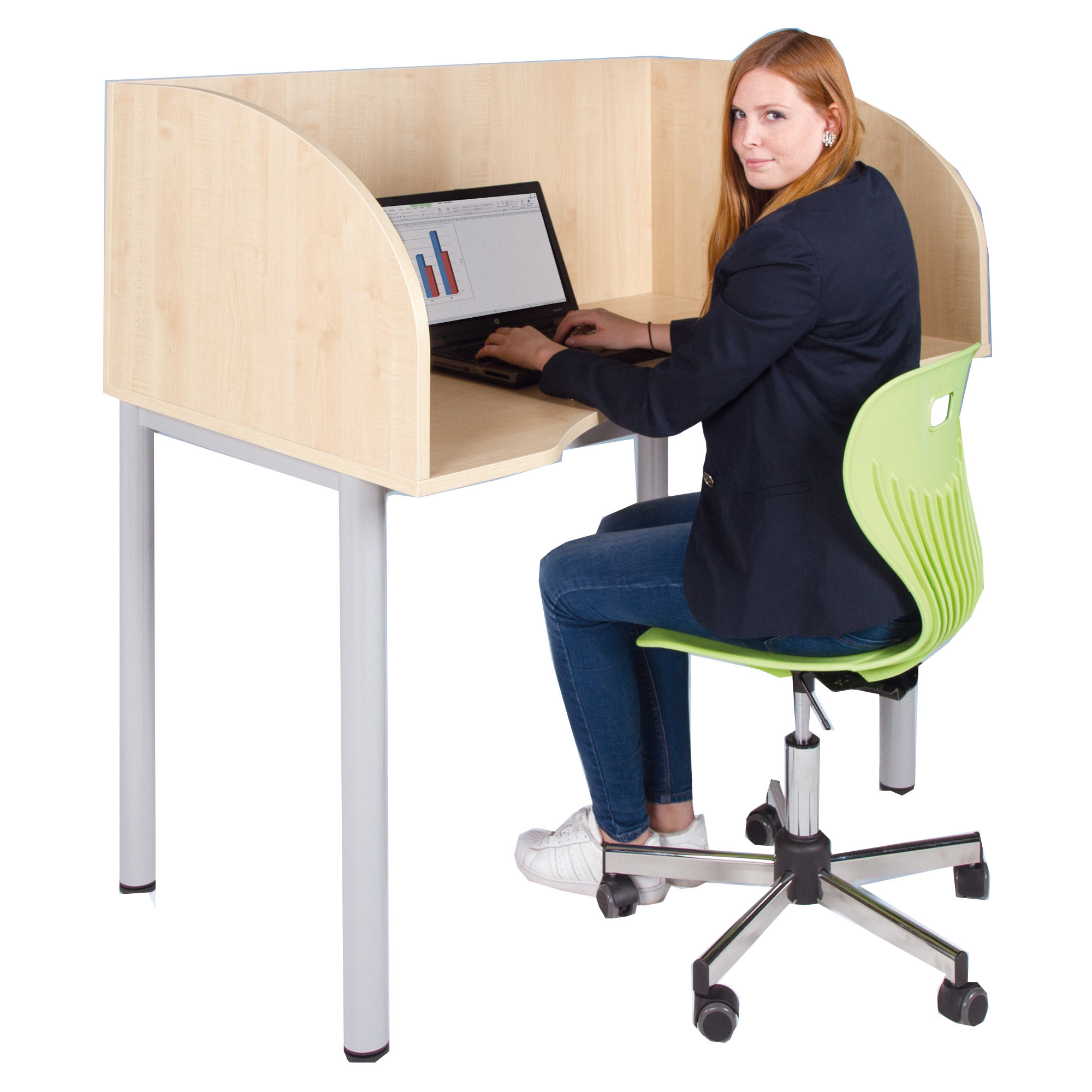 Er zijn veel mogelijke toepassingen voor deze tafel. Waar je ook in alle rust moet werken of onderzoeken, hij is perfect. Bijvoorbeeld in ruimtes voor vrij werk, in bibliotheken, lerarenkamers of in de foyer. De tafel is verkrijgbaar in meerdere maten, naar keuze met of zonder plaatstalen kabelgoot. Het stalen frame is stevig gelast en gepoedercoat. De poten zijn gemaakt van 60 mm rondstaal, hierdoor staat de tafel stevig en stevig. Vloernivelleringsschroef in elke poot. Tafelblad met kastrompsuitsparing voor een optimale zithouding. Snoeruitgang in het midden aan de achterkant van het tafelblad. 3-voudige stekkerdoos met 5 mtr geïntegreerd in de metalen kabelgoot. beveiligings kabel.