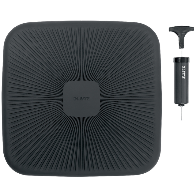 Het Leitz Ergo Actieve Wiebelkussen is het perfecte zitkussen voor een comfortabele en actieve werkplek. Dit opblaasbare zitkussen is ontworpen voor gebruik op elke stoel en helpt de rug te versterken door microbewegingen te maken om het evenwicht te bewaren terwijl je zit. Het IGR-gecertificeerde luchtgevulde stoelkussen verbetert de bloedsomloop en verlicht de druk op de ruggengraat om ongemak door langdurig zitten of gezondheidsproblemen zoals ischias te verminderen. Vierkante vorm voor een betere ergonomie dankzij een groter zitoppervlak in vergelijking met standaard ronde wiebelkussens en een correcte positionering op de stoel. Met zijn minimalistische ontwerp kan dit stijlvolle orthopedische zitkussen een positieve invloed hebben op het welzijn door moeiteloos de perfecte actieve werkomgeving te creëren. *Producteigenschappen; *Vierkante vorm voor een betere ergonomie dankzij een groter zitoppervlak in vergelijking met standaard ronde wiebelkussens en een correcte positionering op de stoel. *Kan ongemak, vermoeidheid en stijfheid als gevolg van langdurig zitten.*Verbetert de bloedcirculatie en kan de druk op de wervelkolom verlichten door microbewegingen te maken om het evenwicht te bewaren en het contact tussen je stuitje en de stoel te minimaliseren. *Kan tot 150 kg dragen als hij op een stoel wordt geplaatst *Wordt geleverd met luchtpomp