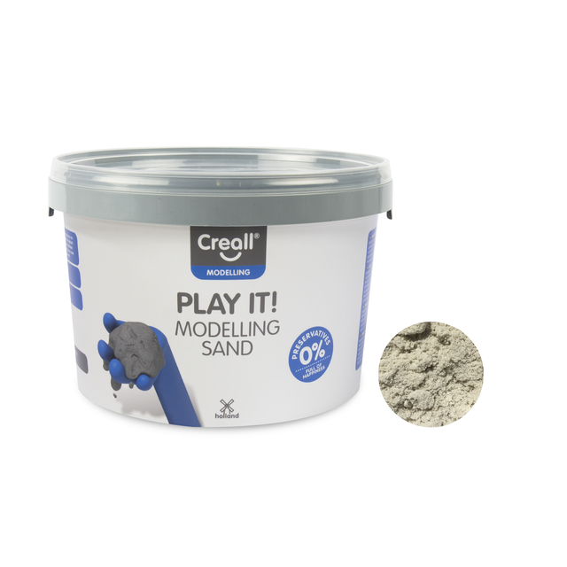 * Creall Modelling Sand – Ultiem speelplezier met fluweelzacht modelleerzand. * Breng de magie van zand naar binnen met Creall Modelling Sand. Dit fluweelzachte, kneedbare zand blijft altijd soepel en droogt niet uit, waardoor kinderen eindeloos kunnen bouwen, vormen en ontdekken. * Altijd klaar voor gebruik – voelt aan als nat zand, maar zonder rommel. * Duurzaam en herbruikbaar – droogt niet uit en blijft keer op keer soepel. * Stimuleert de creativiteit en fijne motoriek – ideaal voor jonge ontdekkers. * Makkelijk op te ruimen – plakt aan zichzelf, niet aan handen of tafels. * Belangrijk: Niet mengen met water of andere zandsoorten, anders verliest het zijn kracht. Bij het wisselen van zand, de bak of tafel grondig schoon maken.* Glutenvrij. * Geschikt voor kinderen vanaf 3 jaar. * Inhoud: 2500 gram.