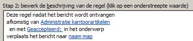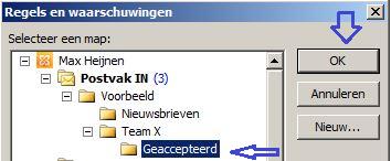 Het programma plaatst de e-mail die voldoet aan de gestelde voorwaarden in een bepaalde map.