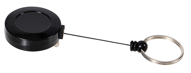 * Uittrekbaar afrolmechanisme voor badge- en pashouders. * Voorzien van sleutelring diameter 25mm. * Stevige metalen klem aan de achterzijde. * Lengte koord 80cm. * Kleur zwart. * Verpakt per 10 stuks.