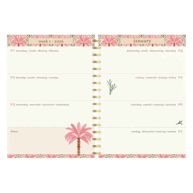 Agenda 2026 Lannoo 120x160 Exotic palms 7dagen/2pagina's zwart