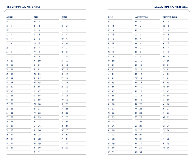 | Pagina indeling: | 7 dagen per 2 pagina's |